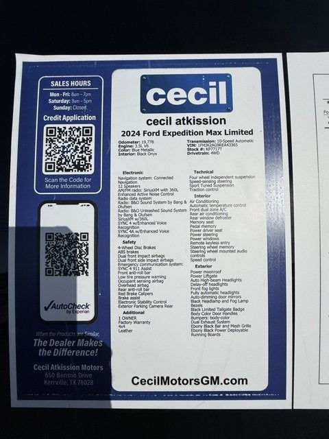 Blue Metallic 2024 Ford Expedition Max Limited 4WD 10-Speed Automatic 3.5L V6 1 OWNER, Factory Warranty, 4x4, Leather, 12 Speakers, 1st & 2nd Row Floor Mats w/Logo, 3.73 Axle Ratio, AM/FM radio: SiriusXM with 360L, Black Headlamp and Fog Lamp Bezels, Black Limited Tailgate Badge, Black Roof Rack Side Rails, Body Color Door Handles, Dual Exhaust System, Ebony Black Bar and Mesh Grille, Ebony Black Power Deployable Running Boards, Ebony Black Tailgate Applique, Enhanced Active Noise Control, Equipment Group 304A Stealth Performance Package, Expedition Lettering on Hood, Heated/Ventilated Lthr Front Captain's Chairs (A), LED Taillamp w/Black Bezels, Memory seat, Navigation system: Connected Navigation, Power driver seat, Power Liftgate, Power moonroof, Power-Folding Sideview Mirrors w/Autofold, Radio: B&O Unleashed Sound System by Bang & Olufsen, Red Brake Calipers, SiriusXM w/360L, Sport Center Console, Sport Tuned Suspension, Stealth Performance Edition Package, Steering wheel mounted audio controls, SYNC 4 w/Enhanced Voice Recognition, Wheels: 22 Premium Black-Painted Aluminum.